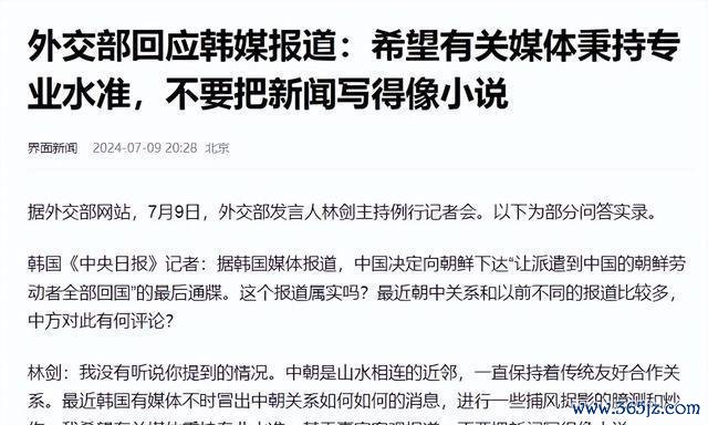 咱国度社交部发言东说念主林剑说了,没传说有这事儿呢,中朝关系如故那么友好。 最近啊,韩国有些媒体总是时时时地弄出些中朝关系有波动的音问,净干些风言风语、瞎猜瞎炒的事儿。他就盼着这些媒体能有点专科精神,可别把新闻报说念搞成写演义似的胡编乱造了。