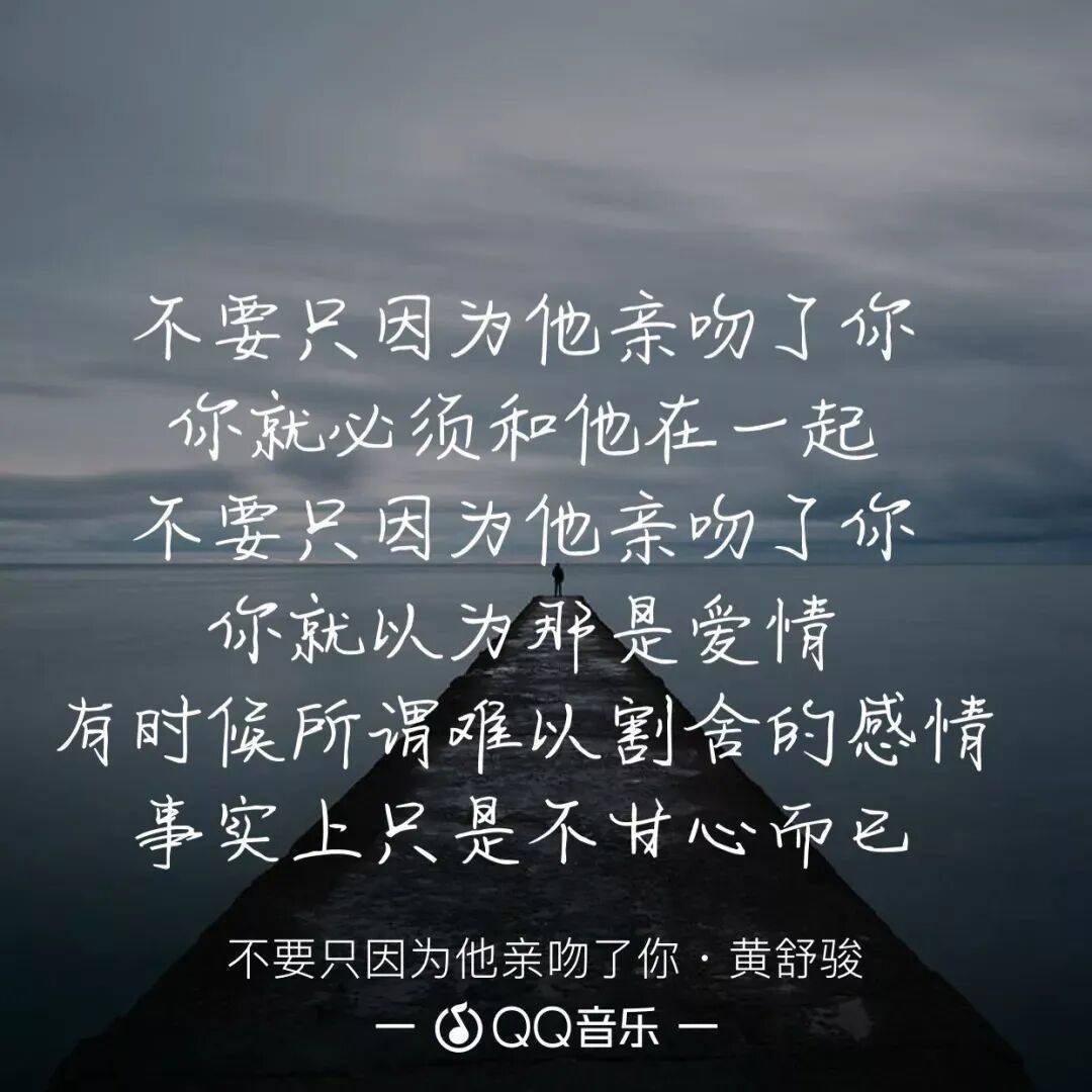 及至离异,他翻然醒悟,通过一曲《不要因为他亲吻了你》,发出感叹:不要只因为他亲吻了你/你就必须和他在一谈/不要只因为他亲吻了你/你就以为那是爱情/有期间所谓难以割舍的样式/事实上仅仅不同意汉典……